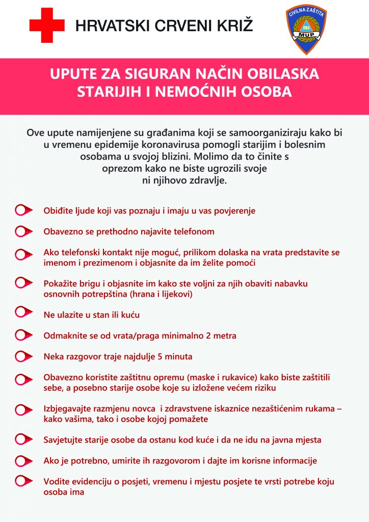 Upute za siguran način obilaska starijih i nemoćnih osoba